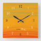 A warm and inviting wall clock featuring a horizontal gradient of sunset-inspired tones — from vibrant orange and carrot shades to hints of deep green. The smooth color transition evokes the serene beauty of the golden hour, when the day gently fades into evening.