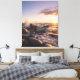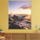 Golden Hour Sunset Waves on Rocky Shore Seascape Canvas Print