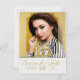 A postcard style save the date in Spanish with photo and custom text. Golden accents and text, some of which is created digitally to look like real gold leaf.