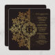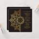 A luxurious invitation for celebrating your most momentous affairs. The dark background has a brown abstract pattern and is overlaid with a repeat of the pattern in golden hues. The featured wreath can hold monograms or a year. The perfect choice to impress. Want to save money? Print with the basic square corners.