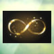 Gold, jewellery infinity symbol with gold stars on a black background. Design with gold star.
