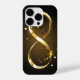 Gold, jewellery infinity symbol with gold stars on a black background. Design with gold star.