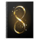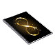 Gold, jewellery infinity symbol with gold stars on a black background. Design with gold star.