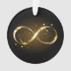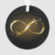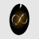 Gold, jewellery infinity symbol with gold stars on a black background. Design with gold star.