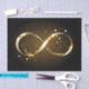 Gold, jewellery infinity symbol with gold stars on a black background. Design with gold star.