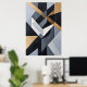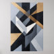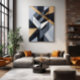 An abstract geometric composition where angular forms intersect in perfect harmony, blending neutral tones with matte gold accents. The artwork conveys modernity, precision, and elegance, ideal for contemporary spaces seeking strong visual identity and refined aesthetics.