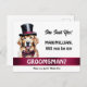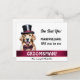 A fun and adorable way to ask your bro to be your groomsman with this graphic of a golden retriever / labrador dog looking very dapper in a black top hat and burgundy bow tie sitting behind a horizontal maroon band set against a white background. Black text templates for your custom wording appear to the right of the pet dog which may be personalised to suit your wedding requirements. These are ideal for a groom asking his team to support him on his road to becoming a husband.