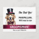 Golden labrador groomsman proposal burgundy tuxedo postcard