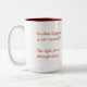 This elegant AMITA Golden Lantern mug features a blue candle glowing inside a golden lantern surrounded by festive poinsettia and red berries — a reminder that “the light enters through our wounds.”