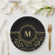 Golden Leaf Pattern Black & Gold Elegant Monogram Paper Plate