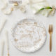 A pattern of golden leaves in outline is the focal point for this beautiful paper plate design. Add your initials and wedding date in the provided typewritten, lower-case font for a modern look to this eye-catching plate.