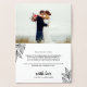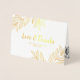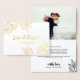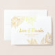 Beautiful wedding thank you card with leaves printed with gold foil, and love and thanks written in a simple calligraphy script. Add your wedding photo to the gold foil thank you card and a personalised thank you note.