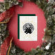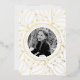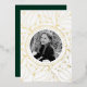 Botanical holiday photo card featuring your photo encircled by a holiday greeting and your family name in gold foil lettering. The design features gold foil leaves on a white background. The back of the foil holiday card provides space for a custom message or an additional photo on a dark green background.