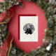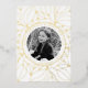 Botanical holiday photo card featuring your photo encircled by a holiday greeting and your family name in gold foil lettering. The design features gold foil leaves on a white background. The back of the foil holiday card provides space for a custom message or an additional photo on a dark red background.