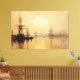 Journey to a bygone era with this mesmerising art print, where historic Boston Harbour is bathed in an ethereal golden yellow light, evoking the romantic atmosphere and rich textures of a classic oil painting in the style of J.M.W. Turner.