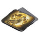 The sleeve is made of nice feeling material and seems very durable. I'm not sure how easy it'll be to clean, but the construction seems sound and the fabric is quick thick. I also like the double zipper. The printing is lovely and appears durable. The white on black contrast is nice, and the design very elegant.