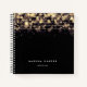 Chic black notebook features strands of gold string lights with a blurred bokeh effect. Personalise with two lines of custom text along the bottom in modern white lettering.