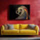 Image Description: This artwork is a stunning fusion of cosmic surrealism and abstract realism, blending intricate golden detailing with a celestial atmosphere. The use of vibrant, rainbow-like colours paired with delicate golden textures creates a dreamlike, ethereal quality. The intricate design and shimmering cosmic background give the piece a divine presence, elevating it beyond traditional representations of Ganesha.