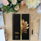 Golden lotus on black background, planner 2025, you can personalise with your name. Trendy design - you'll love your planner for home business school university.