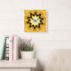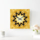 Yellow gold digital art with hearts in ribbon shapes wall clock for home or office and it will make a wonderful gift. art by Elenne Boothe.