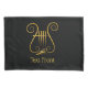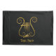 Golden lyre with four strings. Custom text on both sides.