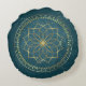 Golden Mandala on Teal Round Cushion