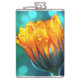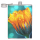 Golden Marigold on Teal Bokeh Hip Flask