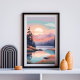 A radiant sun rises over softly blushed mountains, casting warm light across a quiet forest lake and grassy meadows. This dreamy artwork blends bright pastel skies with deep forest hues, making it a perfect addition to a calming, nature-inspired space.