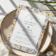 This elegant design features soft blue and golden wildflowers framing a minimalist layout — perfect for rustic, countryside, or romantic garden weddings. A refined blend of simplicity and nature’s beauty, ideal for couples who love a modern botanical touch.