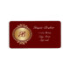 Graphic image of a golden medallion frame with floral accent on deep burgundy red colour background, and monogram letter in it. Type in your information; change colour of background if desired!