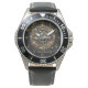 My husband loves the watch, he likes the dial, the graphics, the band, and it keeps perfect time.