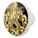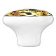 Ceramic doorknob/pull with image of a golden mermaid against a black background.