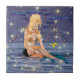 Beautiful golden mermaid on a fantasy ocean and sparkling flowers background