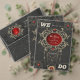 Golden moments of love. The design exudes a dark elegance that immediately catches the eye. It features a central circular motif with a deep red background that creates a passionate and romantic atmosphere. In the middle of the circle are the silhouettes of a bride and groom lovingly holding heart balloons - a symbol of love and joy. Inside the circle, the text "Mr & Mrs" is emblazoned in a stylish font, celebrating the couple's connection and life together. The circle is framed by delicate gold embellishments that add a touch of luxury to the design. These ornate details draw the eye and create an opulent aura.