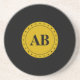 Personalised design with round golden label and custom text template for your monogram, on black background