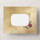 Create an unforgettable winter wedding with this elegant holiday design featuring a lush spray of Christmas roses, poinsettia, holly and pine, white label with an ornate gold border and an opulent faux metallic gold gradient damask pattern background. This one-in-one design also features a convenient tear-off RSVP card. Includes a custom gold crest with initial text fields.