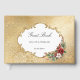 Create an unforgettable winter wedding with this elegant holiday guest book design featuring a lush spray of Christmas roses, poinsettia, holly and pine, white label with an ornate gold border and an opulent faux metallic gold gradient damask pattern background. Includes three editable text fields.