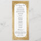 Create an unforgettable winter wedding with this elegant holiday program design featuring a lush spray of Christmas roses, poinsettia, holly and pine, white label with an ornate gold border and an opulent faux metallic gold gradient damask pattern background.