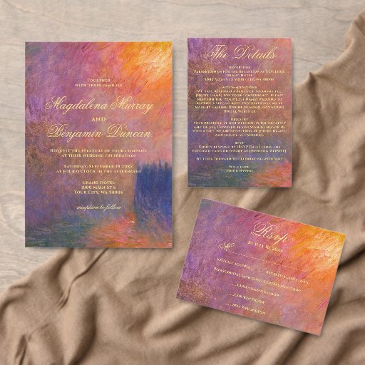 Golden Orange Purple Sunset Sky Monet Art Wedding Invitation