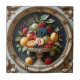 Step into a scene of timeless abundance with Golden Orchard, a digitally enhanced AI creation rich in classical charm. This ceramic tile features a luscious arrangement of fruits—grapes, berries, peaches, citrus, and pears—overflowing from a pedestal bowl and cradled by a regal, gold-toned wreath. Intricate floral and leaf detailing frame the composition, while a moody, dark backdrop adds drama and contrast that lets the vibrant colours pop. Perfect for kitchens, wine cellars, or elegant dining spaces, this design offers a sophisticated fusion of still-life tradition and modern digital craftsmanship.