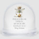 Celebrate the season with a whimsical holiday design featuring a festive fairy standing atop a golden ornament, wrapped in glowing Christmas lights. Dressed in a green dress, red and white striped stockings, and green shoes, she sparkles with charm and wonder. Her translucent wings shimmer with star-like accents, and her tousled hair is adorned with natural flair. Golden stars scatter across the clean white background, adding a magical touch. On the reverse side, the cheerful greeting “Strung with sparkle and standing tall—may your Christmas shine brightest of all!” Merry Christmas.