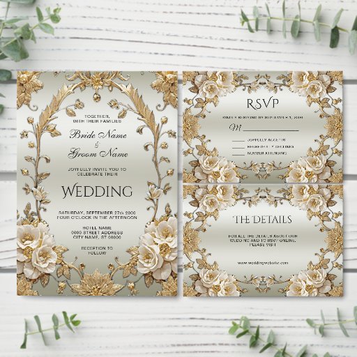 Beautiful Golden Ornate White Flowers Rehearsal Dinner Invitation