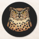 Golden Owl for Halloween, Thanksgiving, Autumn Round Paper Coaster