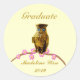 Golden owl on Graduate sticker. The golden owl is standing on a blooming tree branch. Text is ready to be personalised.