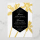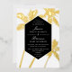 hand drawn palm tree silhouettes in real gold over customisable background, the hexagon shape is also editable in colour and scale.