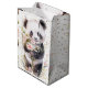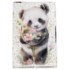 Complete your gift with our Golden Panda Gift Bag. This adorable gift bag features a charming panda holding a bouquet of flowers against a dazzling background of gold polka dots.