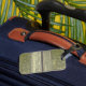 Of of the two luggage tags have some scratch on it.