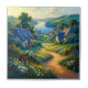 Golden Path to Blue Water is a luminous countryside landscape created as an homage to the radiant, idealised environments associated with Maxfield Parrish. A winding sunlit path draws the viewer through flowering gardens and sculpted cottages towards a serene expanse of cobalt-blue water, framed by rolling hills and glowing skies. Saturated colour, theatrical light, and carefully balanced composition create a scene that feels timeless and gently unreal, evoking a sense of calm, beauty, and mythic stillness without directly imitating Parrish’s work.