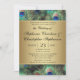 Wedding invitation... Elegant and refined peacock feather background in rich saturated colours of royal blue, copper gold, and teal emerald green. The peacock is a stately bird with ornamental feathers and it makes a beautiful display for a summer wedding or any occasion Metallic looking gold gradients add a touch of glamour and refinement.