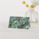 Wedding reception custom printed table place cards. Elegant and refined peacock feather background in rich saturated colours of royal blue, copper gold, and teal emerald green. The peacock is a stately bird with ornamental feathers and it makes a beautiful display for a summer wedding or any occasion Metallic looking gold gradients add a touch of glamour and refinement.